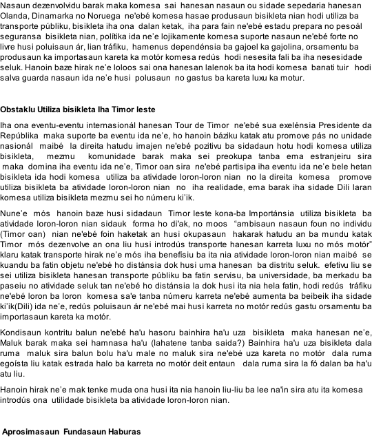 Turizmu Komunitario Dokumentasaun More information  about haburas Guarda ita nia saúde no salva ita nia Mundu liu husi atividade Sepedaria Lucio Savio: “Guarda ita nia saúde no salva ita nia Mundu liu husi atividade Sepedaria” Biobriket