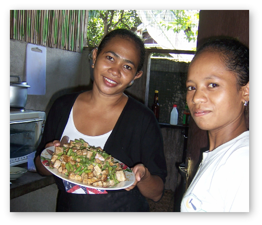 Ao almoço servimos pratos locais, utilizando produtos orgânicos frescos, comprados no mercado local. As refeições são preparadas com receitas tradicionais onde o sabor resulta da frescura dos principais ingredientes em vez de depender de temperos pesados. Ao verdadeiro estilo timorense, servimos todos os acompanhamentos picantes à parte! Visite o nosso restaurante e prove a nossa cozinha timorense autêntica. É com muito gosto que lhe damos as boas vindas para o almoço, entre as 12h e as 14h.